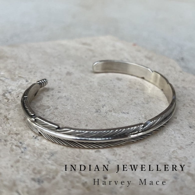 インディアンジュエリー Indian Jewelry Harvey Mace (ハーヴィー・メイス) シルバー イーグルフェザーバングル