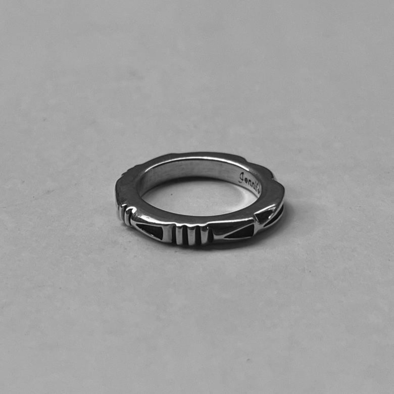 滑らかな鏡面シルバーに深く打たれたスタンプが特徴。シンプルで高級感のあるジュエリーで性別・世代問わず人気の高いアーティストです。