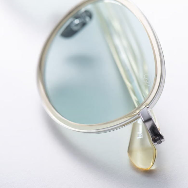ガラスレンズは一般的なプラスチックレンズと比べ透明度が非常に高く、より鮮明で快適な視界になる所や丈夫で壊れにくい特徴があります。紫外線の影響による色褪せも半永久的に無いので、お気に入りのモノを永く使いたいという人には相性の良い素材です。tesioで使用しているこのガラスはサングラスの他、車のフロントガラスや一眼レフカメラのレンズにも採用されている日本製のガラスです。
