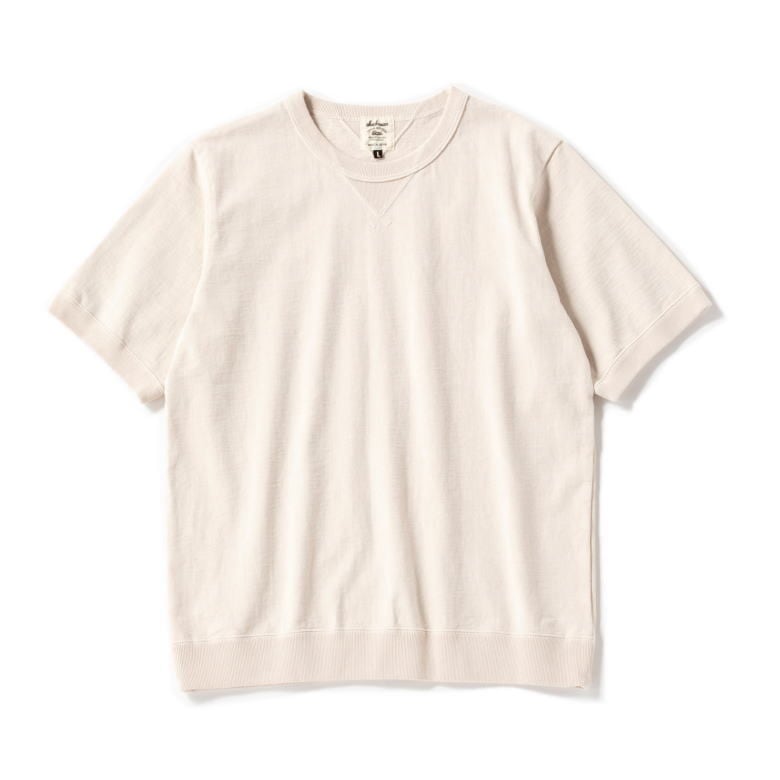 透けない、身体のラインがわかりにくい、汗染みが目立ちにくいといった見栄えの安心感に加え、リブの締まりによってふくらみのある半袖スウエットのようなフォルムになり、生地と肌の間に隙間が生まれることから春から夏にかけて快適に着用できます。