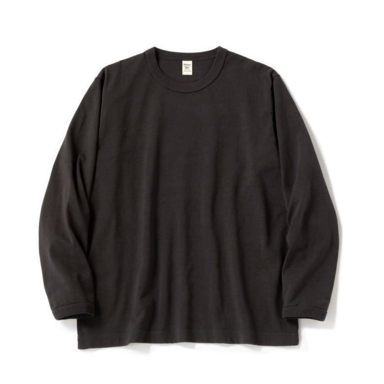 アメリカ産のコットンを使用して吊り編み機で限界まで度目を詰めて編み立てた約11.5オンスの極厚素材「ドツメ天竺」を使用した長袖Tシャツです。