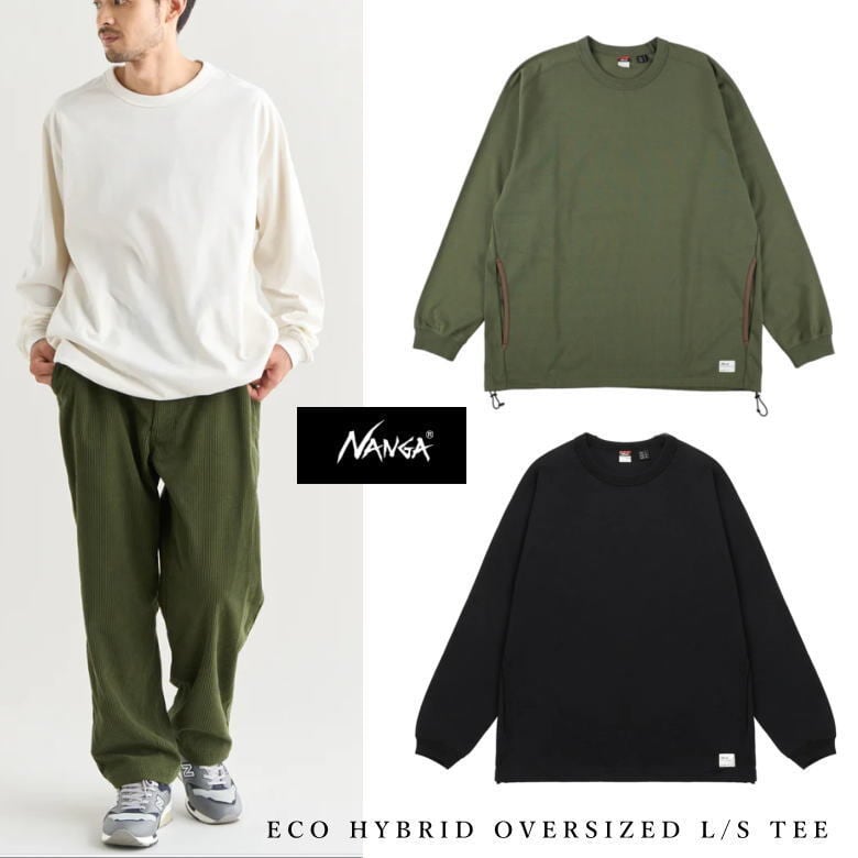 NANGA ナンガ ECO HYBRID OVERSIZED L/S TEE(MEN) エコハイブリッド オーバーサイズ ロングスリーブTシャツ NW2411-1G808 WHT (ホワイト) GRN (グリーン) BLK (ブラック) | noselow