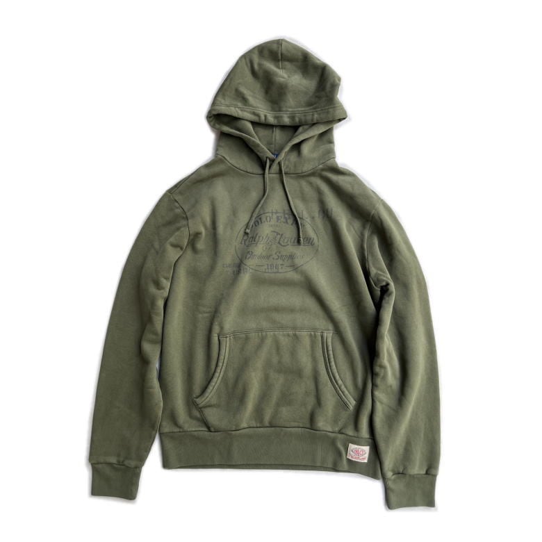 Polo Ralph Lauren ポロラルフローレン sweat PullOver Parka プルオーバーパーカー GREEN OLIVE ヴィンテージ加工 HOODIE フーディ | noselow