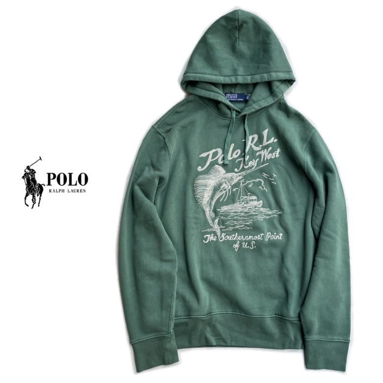 Polo Ralph Lauren ポロラルフローレン Sweat PullOver Parka プルオーバーパーカーGREEN Vitange ビンテージグリーン ヴィンテージ加工 HOODIE フーディ 刺繍 ステッチ入り