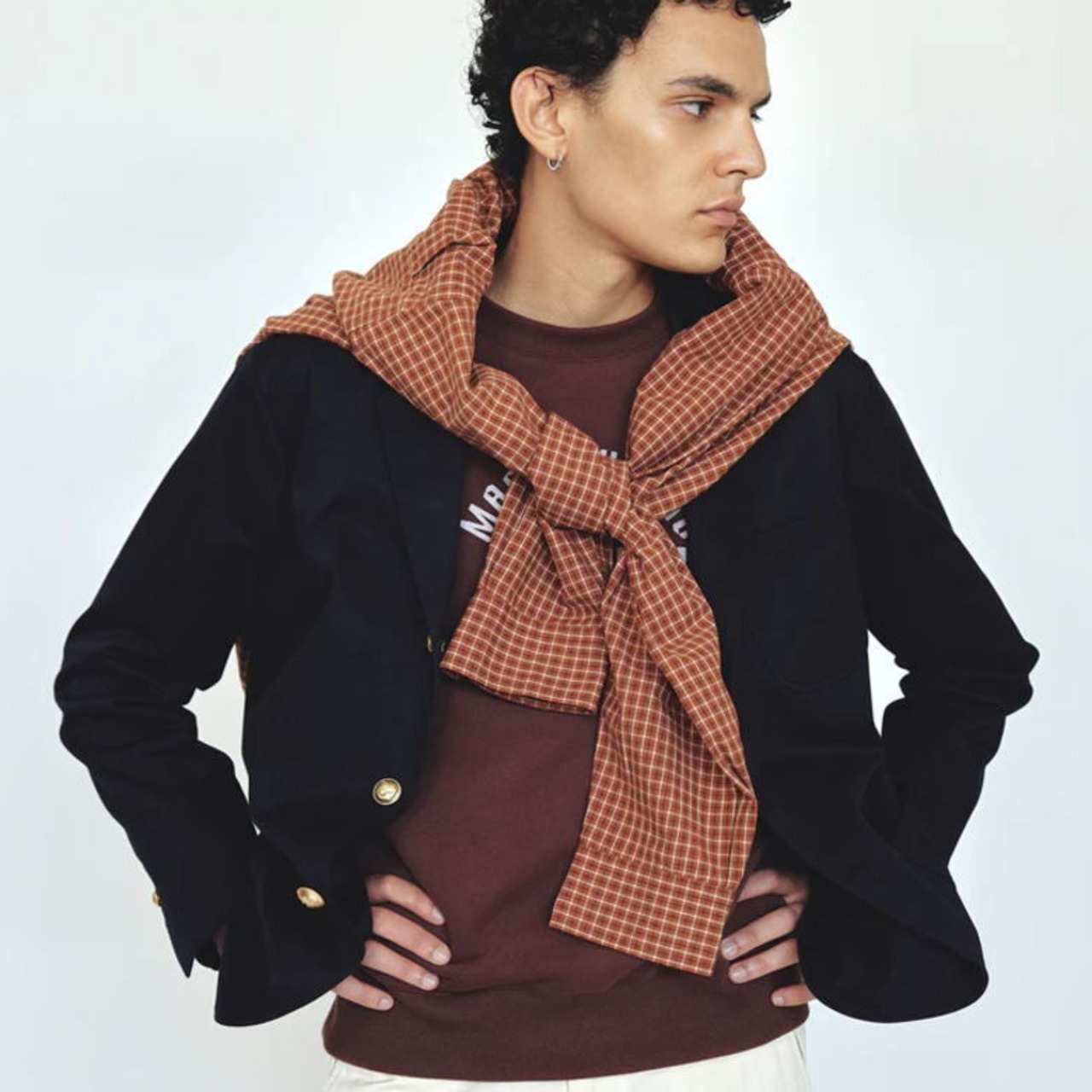 ややオーバーサイズ気味に設計された3ボタン仕様のブレザーは、Tシャツやカットソーに羽織るだけでこなれた雰囲気を演出します。