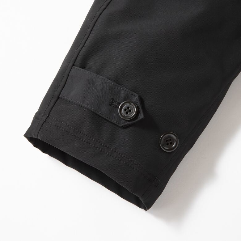 ポリエステルフィラメント糸で織り上げたオックスフォード織りの布帛素材を使用したスペクテーターコートです。