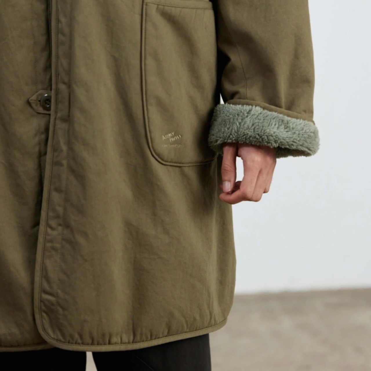 Broken Twill Reversible Coat AM-2554007 ARMY TWILL アーミーツイル ブロークンツイル リバーシブル コート ボアコート ロング丈 モコモコ | noselow
