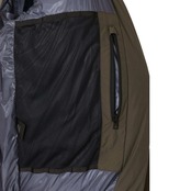 雨天時など外側からの水気や、フィールドでの作業時の汗等、内側からの湿気によりダウンが濡れて小さくなり、保温力が低下するのを最小限に抑えます。