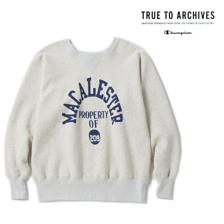 「REVERSE WEAVE」と表記していなかった当時の襟ネームも復刻しています。プリントには実在のヴィンテージ商品のデザインを採用。さらに、左袖にCロゴワッペンが付いていない点も当時の仕様そのままです。