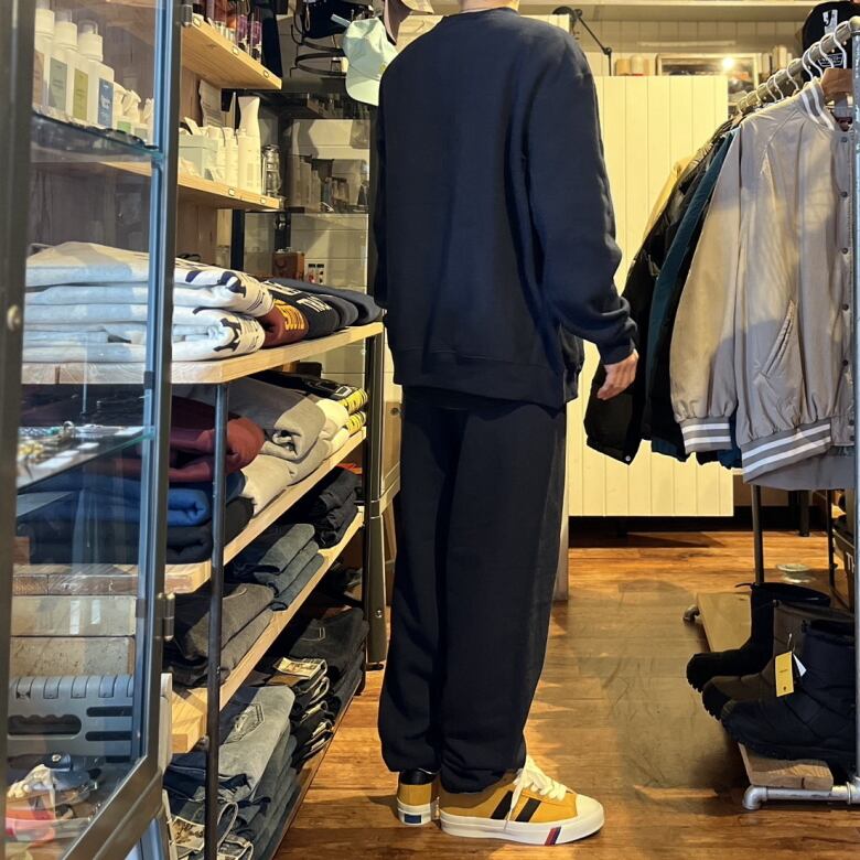 フロントのNAVYロゴプリントが目を惹くクルーネック トレーナーです。