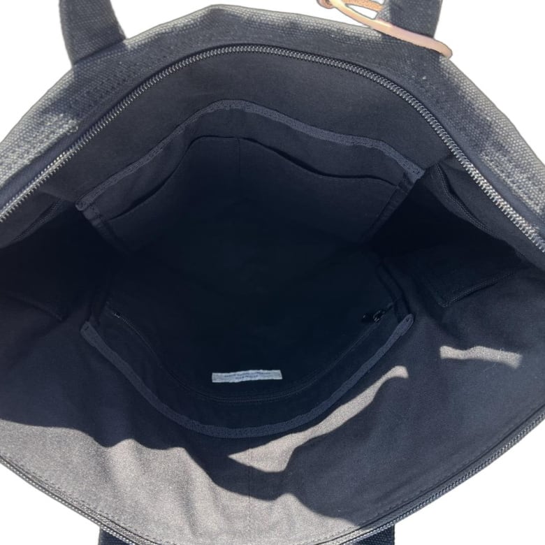 オリジナルのファスナーや、強度を高める底部のデザインなど、細部にまでSLOWのこだわりが息づいています。