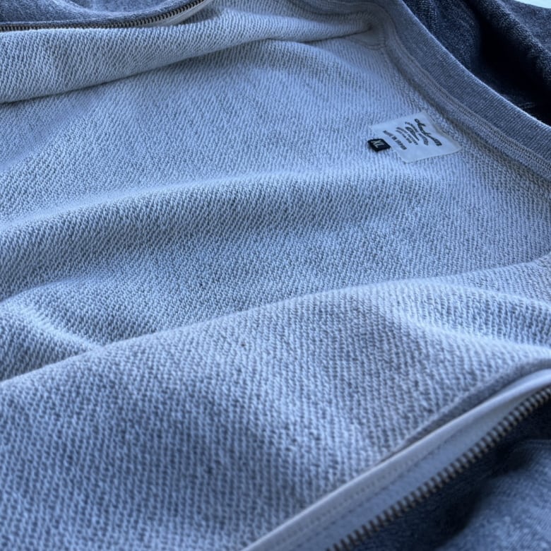 しっかりとした肉感のある厚手、独特の粗挽き感のある杢目が特徴な裏毛素材を使用。