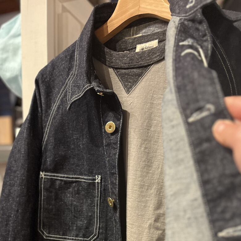 身生地との相性を考えスウエット並みのしっかりした厚みのリブを使用し全体のバランスを整えました。